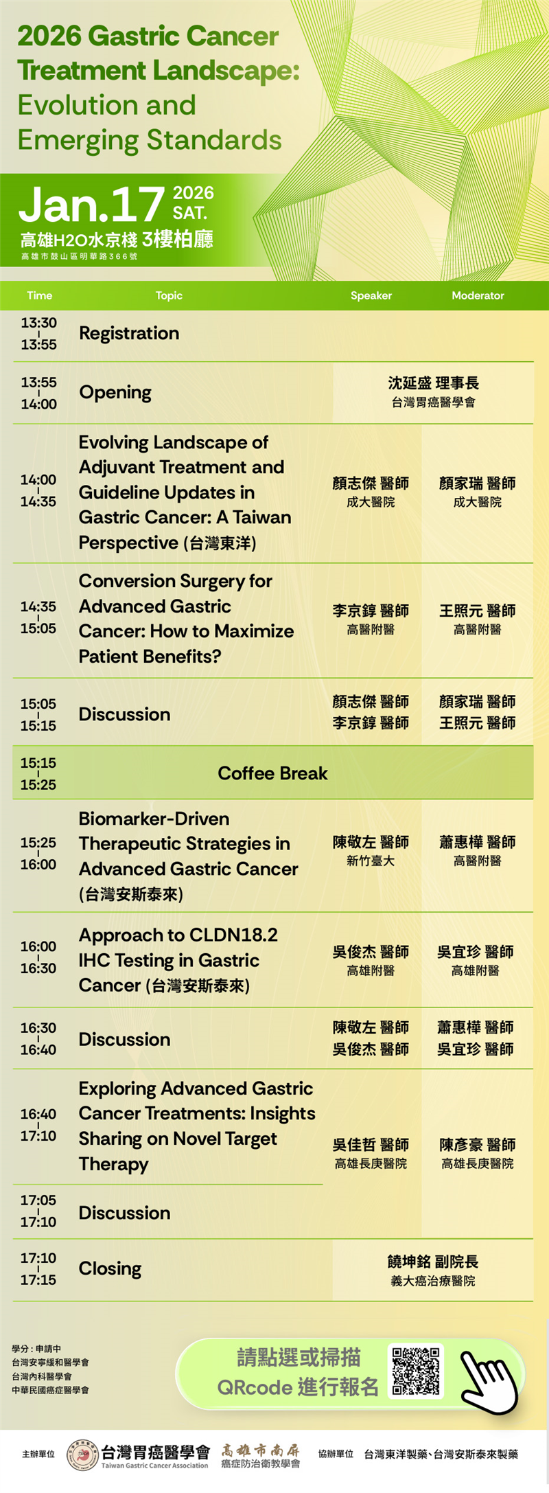 [活動資訊]115年1月17日 2026 Gastric Cancer Treatment Landscape: Evolution and Emerging Standards