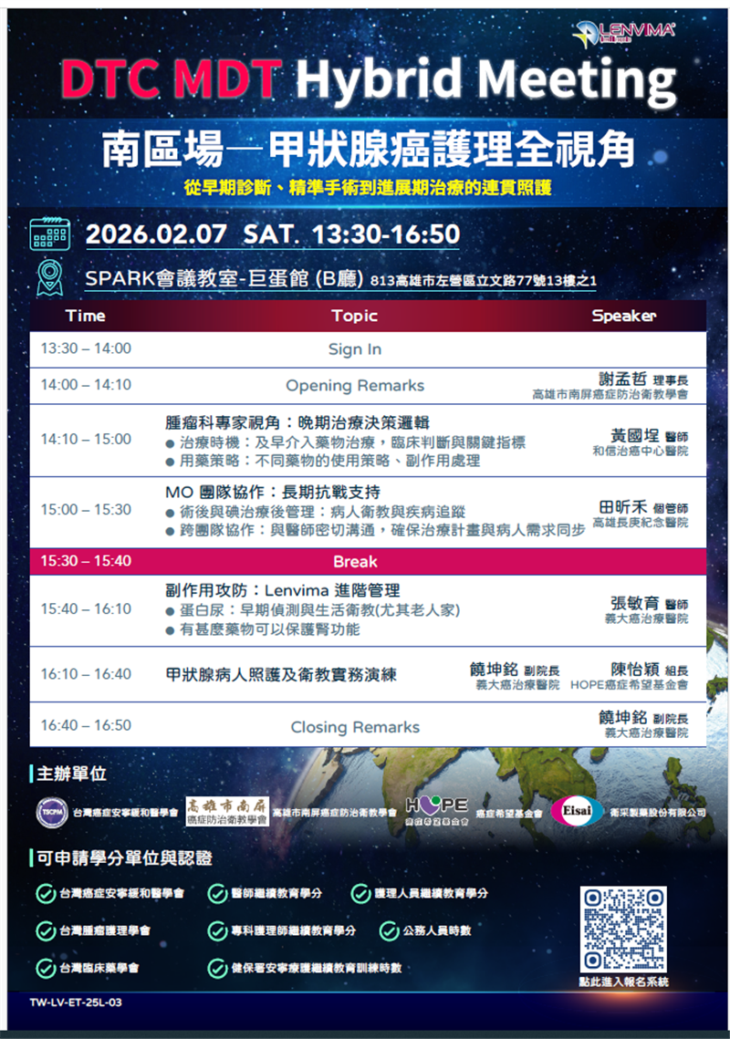 [活動資訊]115年2月7日 甲狀腺癌護理全視角-從早期診斷、精準手術到進展期治療的連貫照護